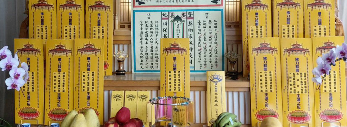 敬愛的善信大德: 七月報恩超渡大法會,潛能講堂佛教學會為集虔誠禮懺殊勝之功德,隆重啟建,梁皇寶懺焰口。 佛光普照,超薦先亡、冤親債主、孝親報恩、解冤釋結、消災解厄、改變命運! 111年度 梁皇寶燦、焰口大法會